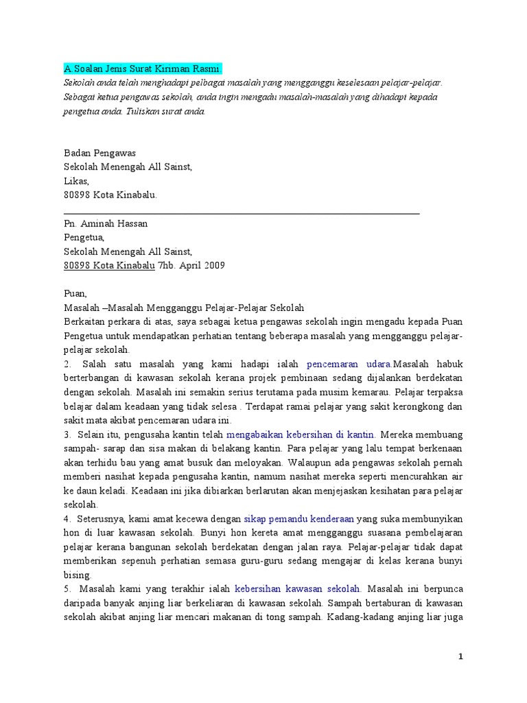 Surat Rasmi Jenis Aduan Rasmi Suc from imgv2-1-f.scribdassets.com Surat terbagi menjadi dua jenis, yaitu surat resmi dan surat tidak resmi. Setelah dibahas mengenai beberapa contoh surat undangan resmi, dimulai dari surat undangan perusahaan, surat undangan pembagian raport sampai dengan surat undangan peresmian tempat, kini akan dilanjutkan dengan pembahasan untuk mengenal beberapa. Surat rasmi masalah kerosakan jalan raya. Berisi contoh surat resmi sekolah, perusahaan, permohonan, surat resmi undangan. Contoh surat aduan diberhentikan kerja anda boleh gunakan contoh draf surat di bawah untuk membuat aduan ke jabatan tenaga kerja jika diberhentikan kerja oleh majikan tanpa sebab. Dari kedua jenis surat ini mempunyai tujuan tersendiri dan tidak dapat digunakan di sembarang tempat. Surat resmi dinas kesehatan surat resmi edaran (universitas) nah, dibawah ini ada contoh surat resmi bahasa sunda untuk undangan kerja bakti. Untuk memudahkan sesiapa yang perlu menulis surat kiriman rasmi, laman web ini menyediakan format surat rasmi, dan juga contoh surat rasmi tidak hadir ke sekolah pada rujukan.